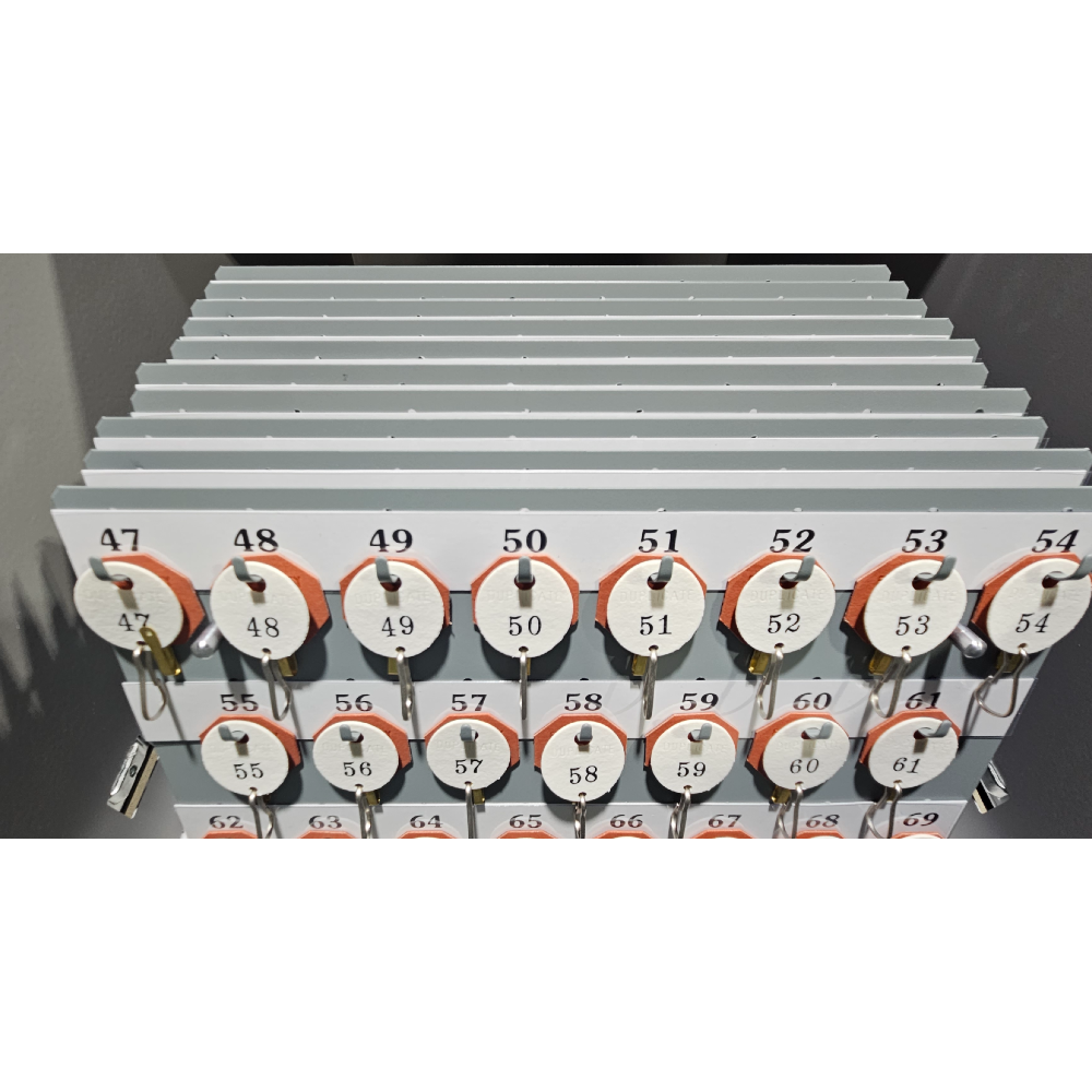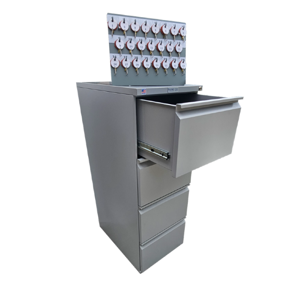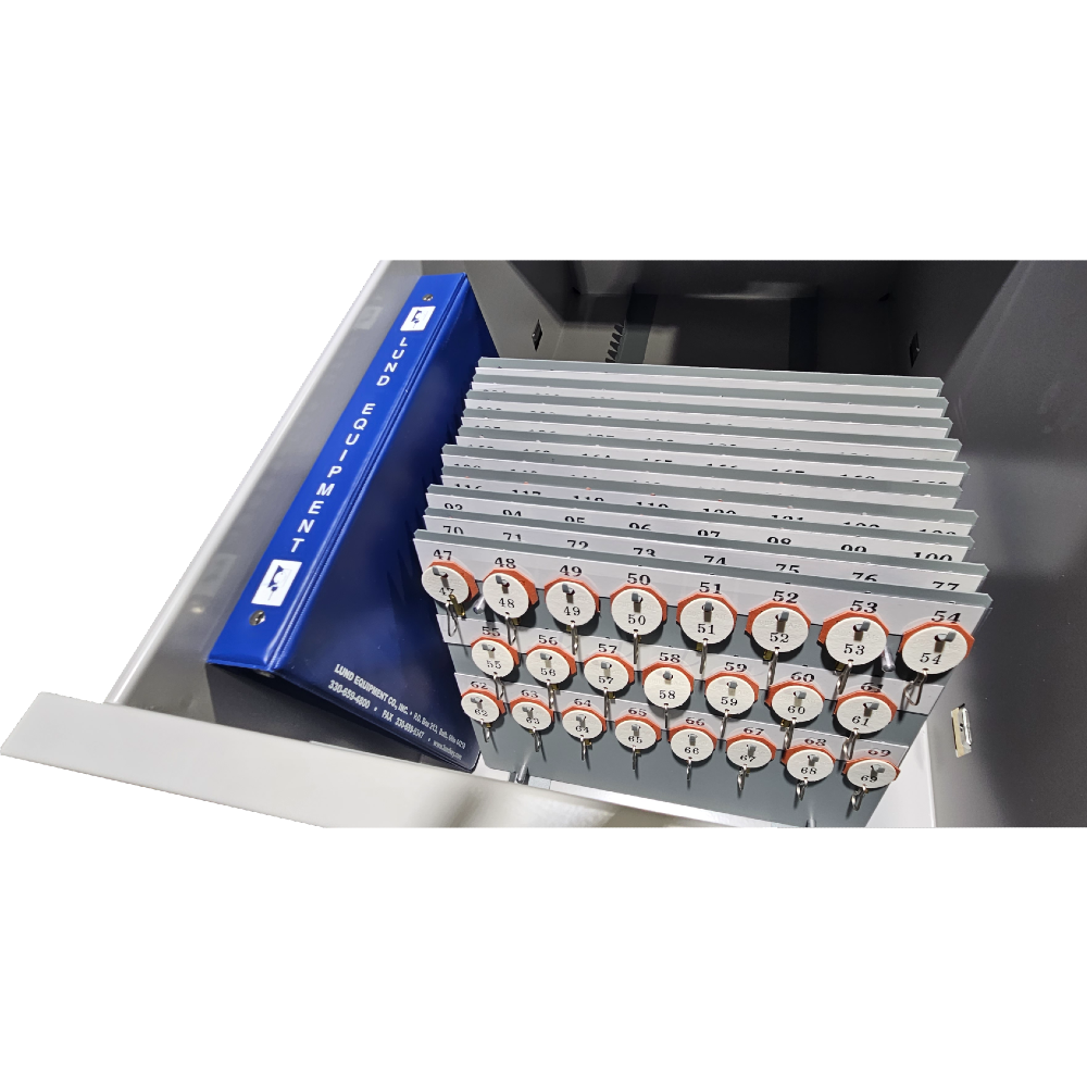 Lund Four Drawer key cabinets come furnished with a 2-tag, 1-tag or no-tag system. Our 1400 series houses 1610-3312 hooks with the capability of holding 3-4 standard keys per hook. Drawers operate on full ball bearing suspension, while the panels are self-supporting and removable.