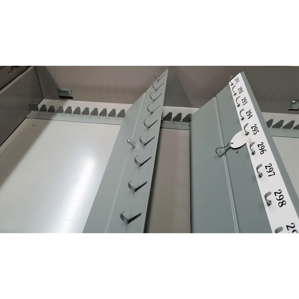 Lund Six Drawer key cabinets come furnished with the complete 2-tag system, 1-tag or no tag system. Our 2600 series houses 1200-1800 hooks with the capability of holding 3-4 standard keys per hook. Drawers operate on full ball bearing suspension, while the panels are self-supporting and removable.